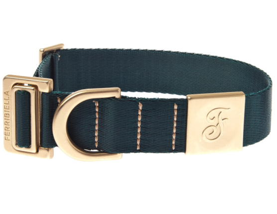 Obojek nylon speciál s okrasnou kovovou pevnou sponou a rytím značky Ferribiella.