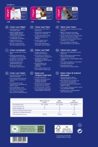 100 archů A4, gramáž 200 g/m2, oboustranný tisk, lesklý. Typ tiskárny: barevná laserová, černobílá laserová.