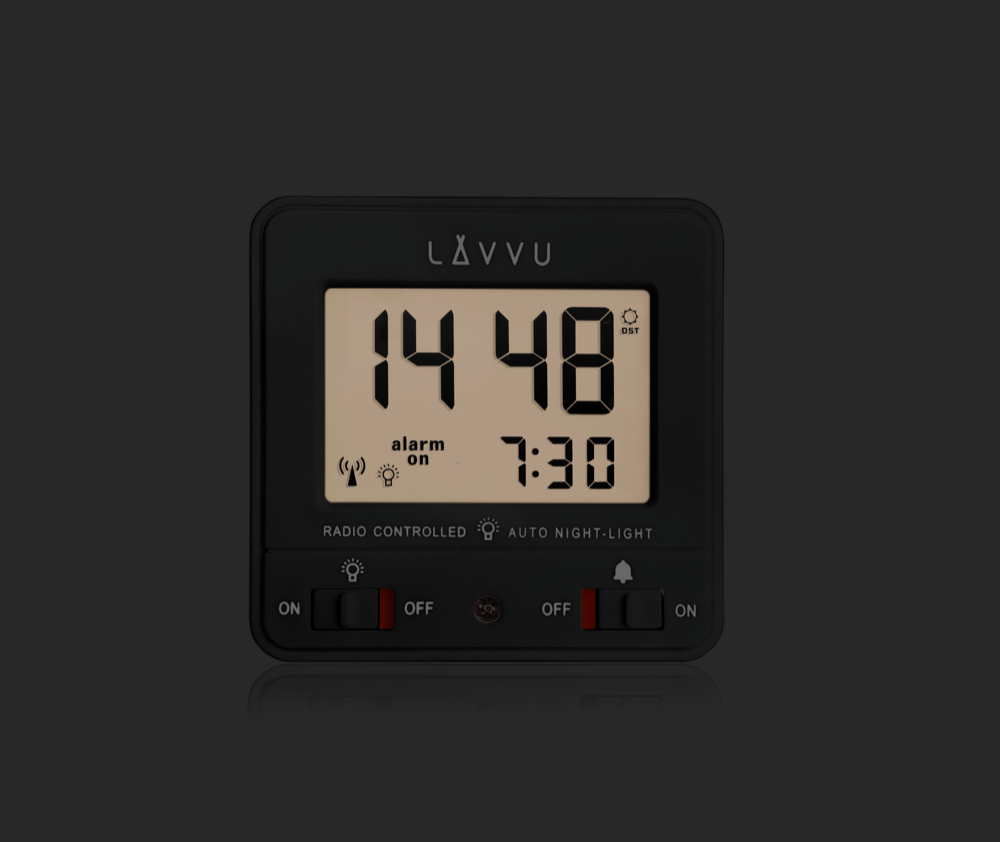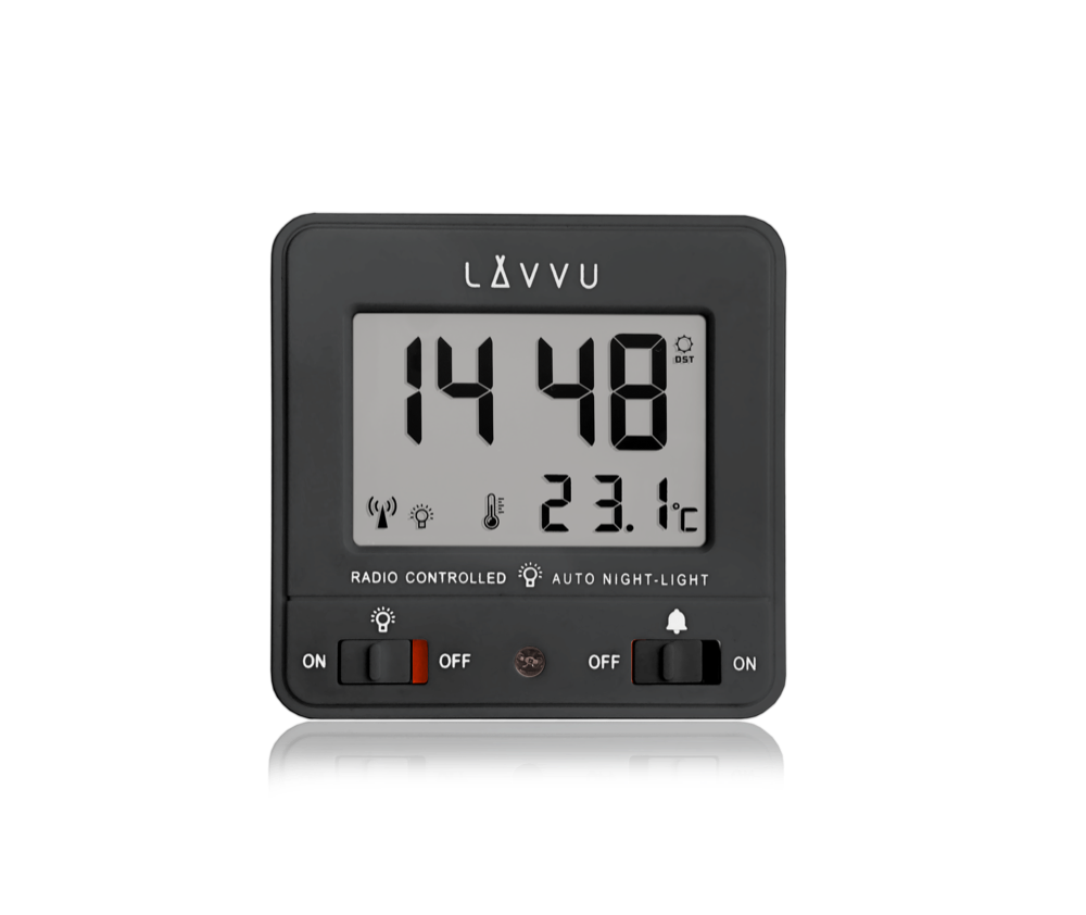 Praktický digitální budík LAVVU je automaticky řízen přesným rádiovým signálem z Německa.