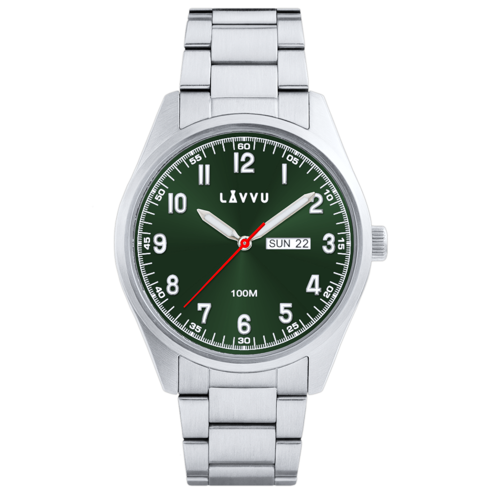 Toužíte po hodinkách, které se stanou spolehlivým doplňkem pro každou příležitost – od cestování přes kancelář až po sportovní aktivity? Objevte LAVVU. Pouzdro je vyrobené z nerezové oceli s řemínkem z ušlechtilé oceli. Model je laděný do stříbrných a zelených tónů. Hodinky obdržíte v originální magnetické krabičce, do které si je můžete ukládat i doma. Díky tomu jsou skvělou volbou i jako dárek.