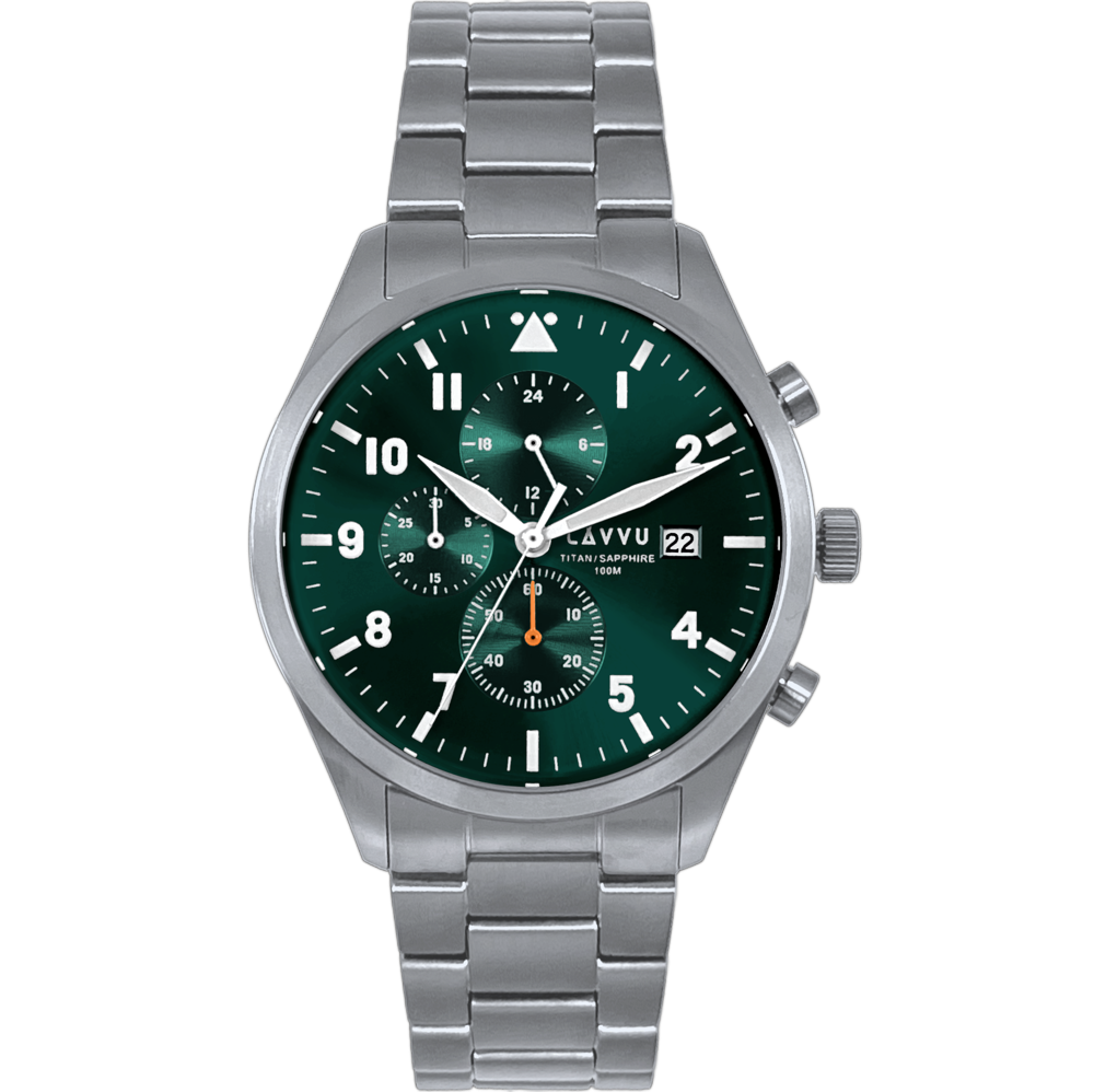LAVVU Pánské titanové hodinky PILOT Chronograph Emerald Green 100M Sapphire