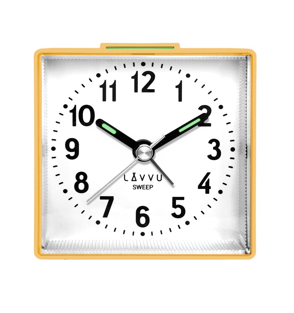 LAVVU Žlutý budík SWEEP s plynulým chodem – 3 ROKY ZÁRUKA!