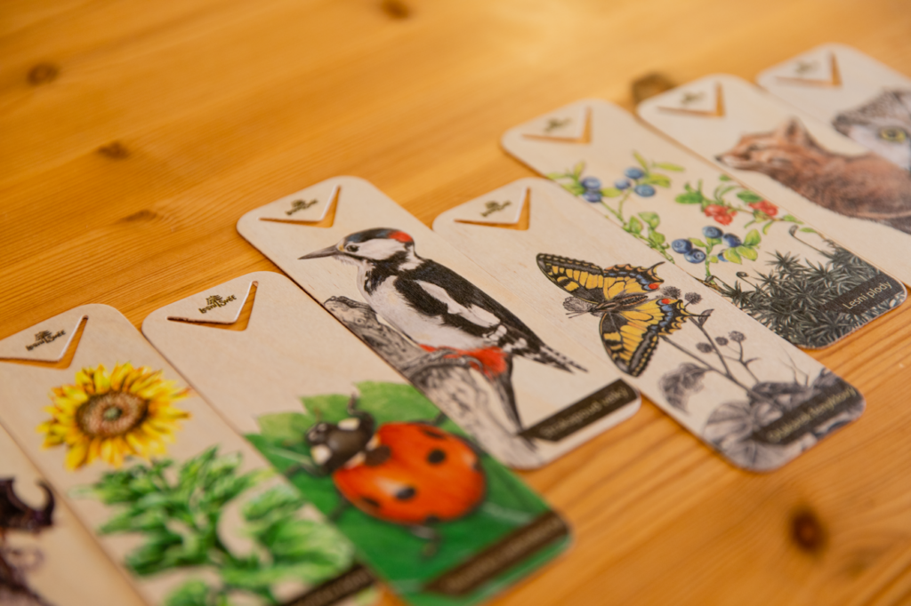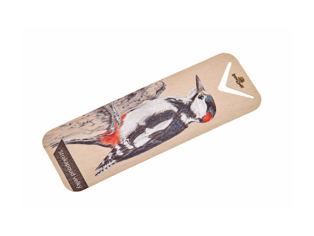 Lesní svět Dřevěná záložka – Strakapoud
