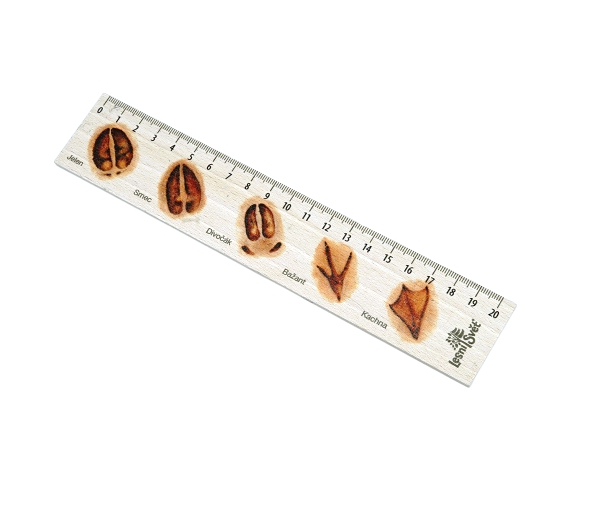 Vzor pravítka: jelen, srnec, divočák, bažant, kachna.