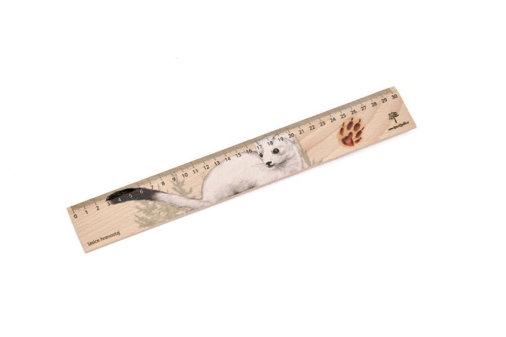 Lesní svět Dřevěné pravítko 30 cm – Lasice hranostaj