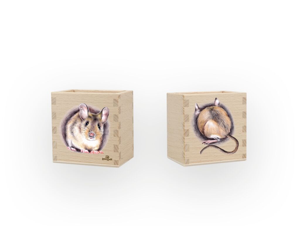 Balení obsahuje 1 stojánek na tužky z masivu o rozměru v: 8 cm, š: 8 cm, h: 5 cm.