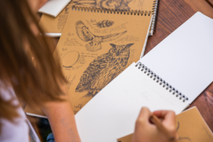 Papír bloku je vhodný na psaní i kreslení pastelkami.