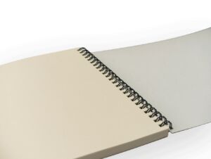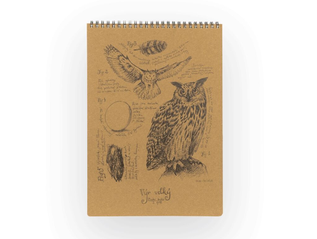 Listy bloku jsou z krémově tónovaného papíru s gramáží 80 g/m2 (creamy volumen) a desky z kraftového papíru 450g .