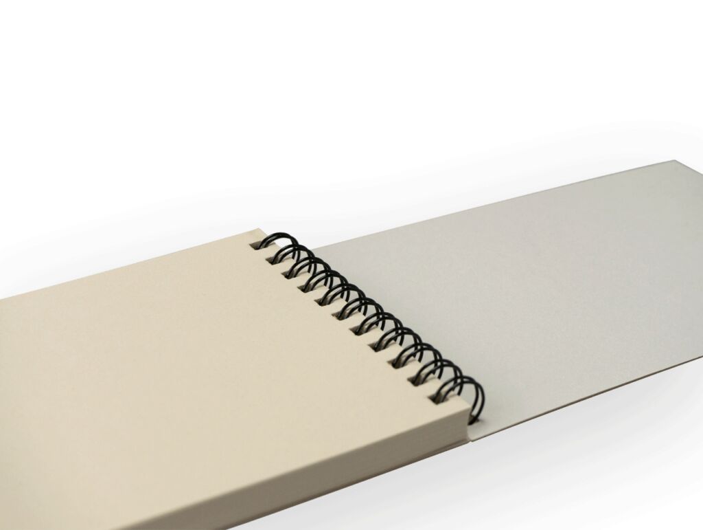 Listy bloku jsou z krémově tónovaného papíru s gramáží 80 g/m2 (creamy volumen) a desky z kraftového papíru 450g .