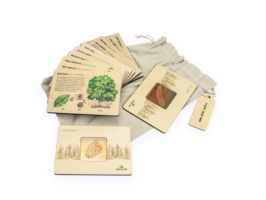 Na každé kartě najdete věrnou ilustraci vybraného stromu, základní míry, básničku a frotáž.