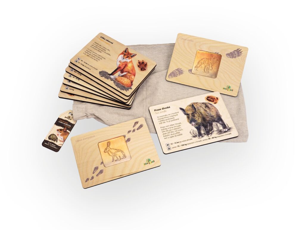 Obsahuje tato zvířata: liška obecná, prase divoké, jelen evropský, zajíc polní, vlk obecný, kuna lesní, srnec obecný, medvěd hnědý, rys ostrovid, veverka obecná, ježek západní, myšice lesní.