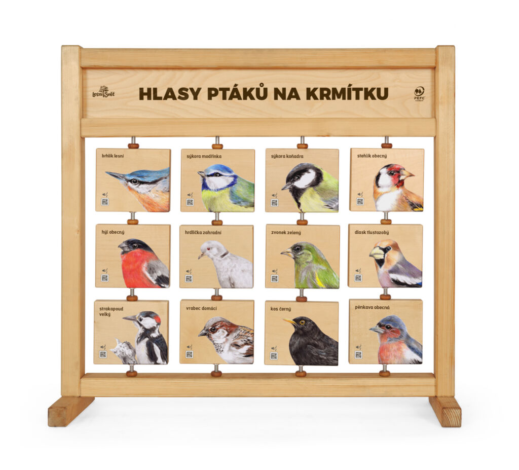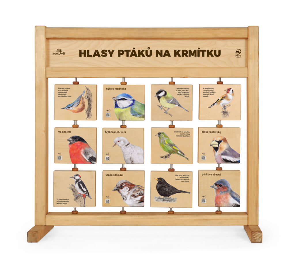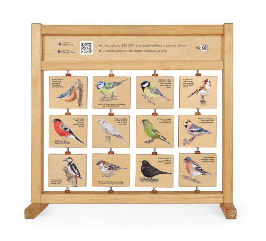 Po stažení aplikace „Lesní Svět“ a načtení QR kódu, který naleznete na otočné tabulce, se můžete dozvědět spoustu dalších informací včetně hlasu ptáka.