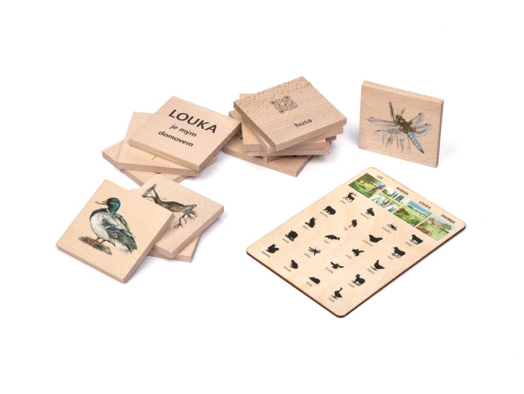 Obsahuje tyto živočichy: jelen, jezevec, liška, prase divoké, veverka, kachna, čáp, kapr, vážka, skokan, kobylka, babočka, včela, čmelák, krtek, kráva, ovce, slepice, koza, husa.