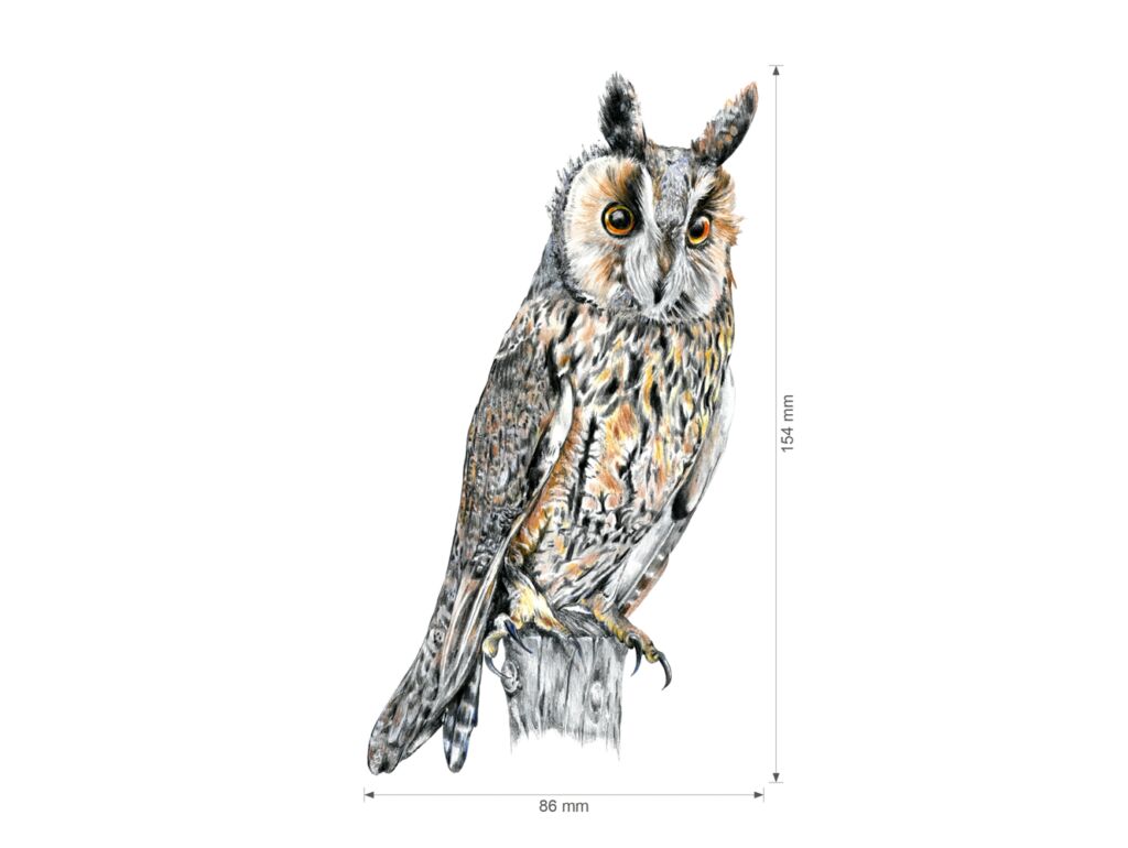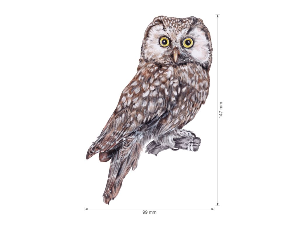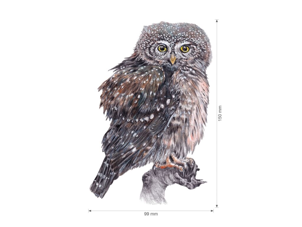 Vzory nažehlovaček: sova pálená, sýc rousný, kulíšek nejmenší, kalous ušatý.