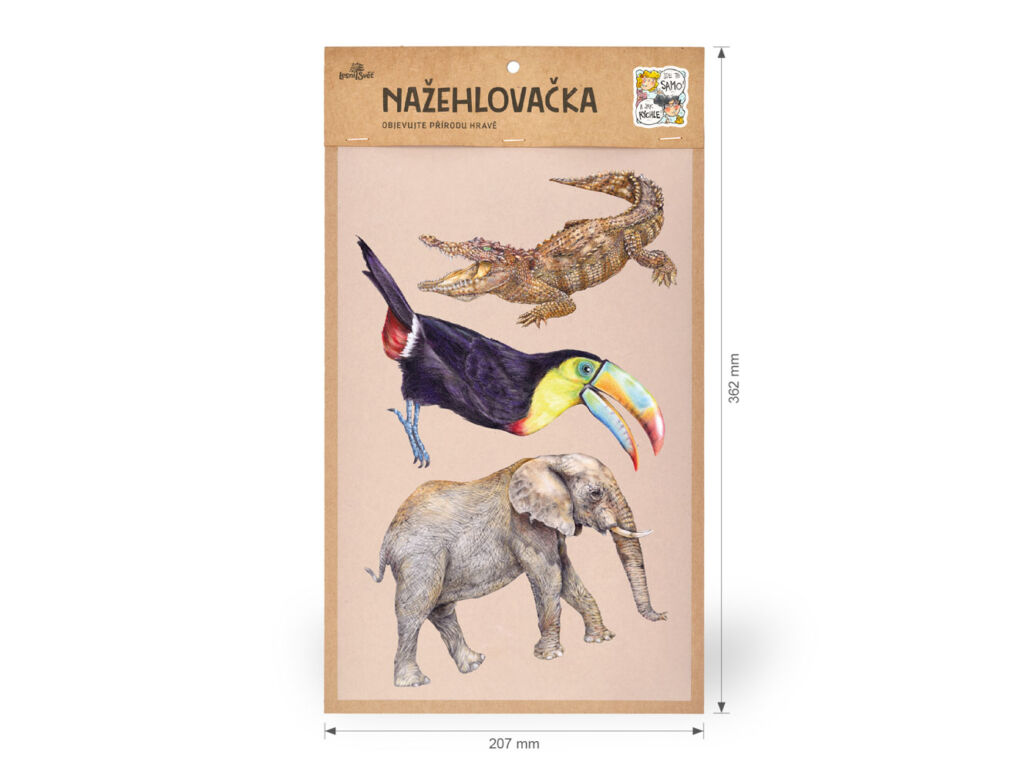 Vzory nažehlovaček: krokodýl, tukan, slon.