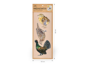 Vzory nažehlovaček: kuře, slepice, tetřev.