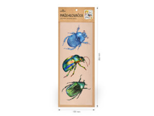 Vzory nažehlovaček: chrobák jarní, mandelinka nádherná, zlatohlávek zlatý.