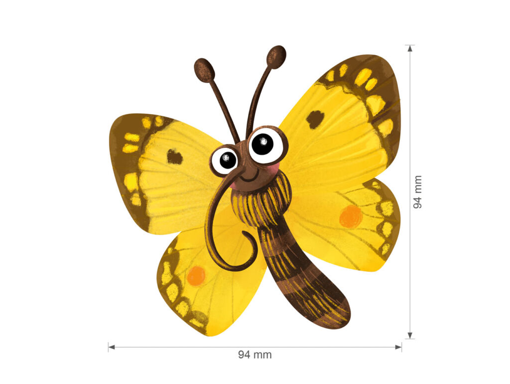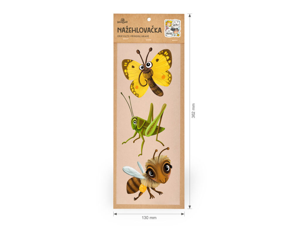Vzory nažehlovaček: motýl, kobylka, včela.