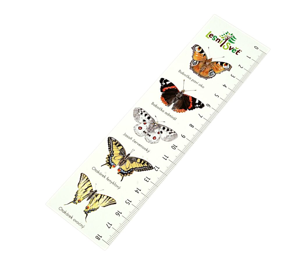 Vzor záložky: babočka paví oko, babočka admirál, jasoň červenooký, otakárek fenyklový, otakárek ovocný.