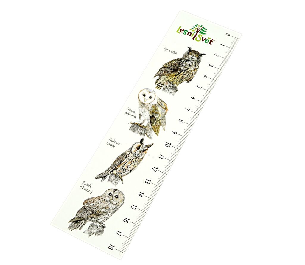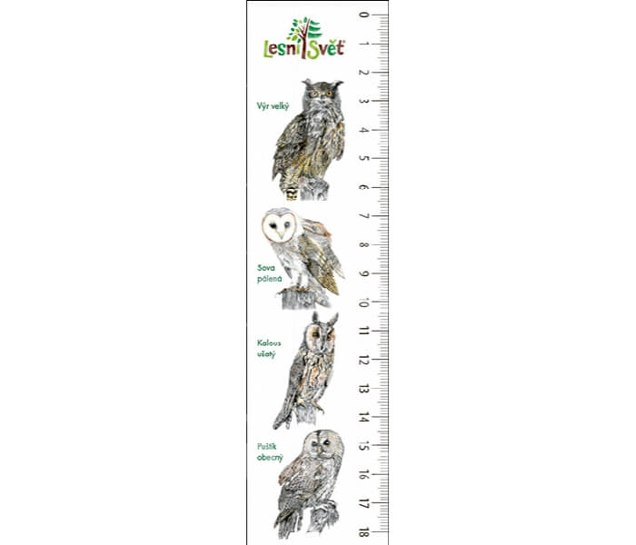 Vzor záložky: výr velký, sova pálená, kalous ušatý, puštík obecný.