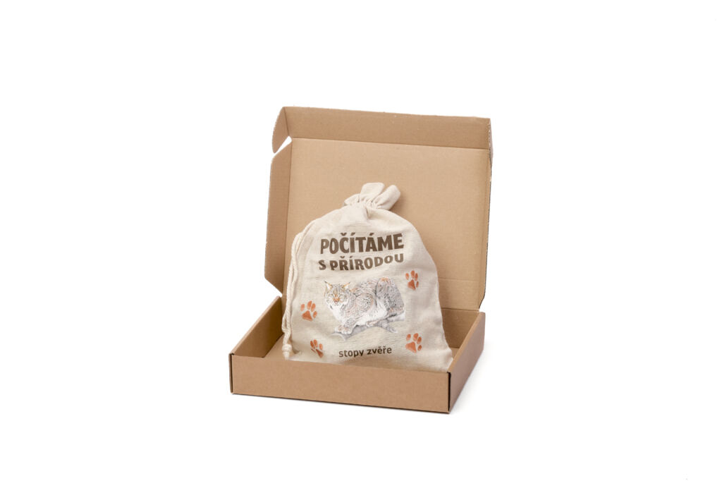 Zabaleno v přírodním látkovém pytlíku s potiskem.