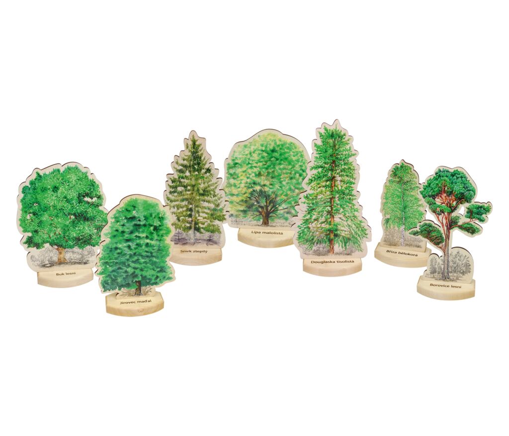 Balení obsahuje 22 stromů, makety jsou z překližky o velikosti 20 35 cm na oddělitelném podstavci z masivního dřeva.