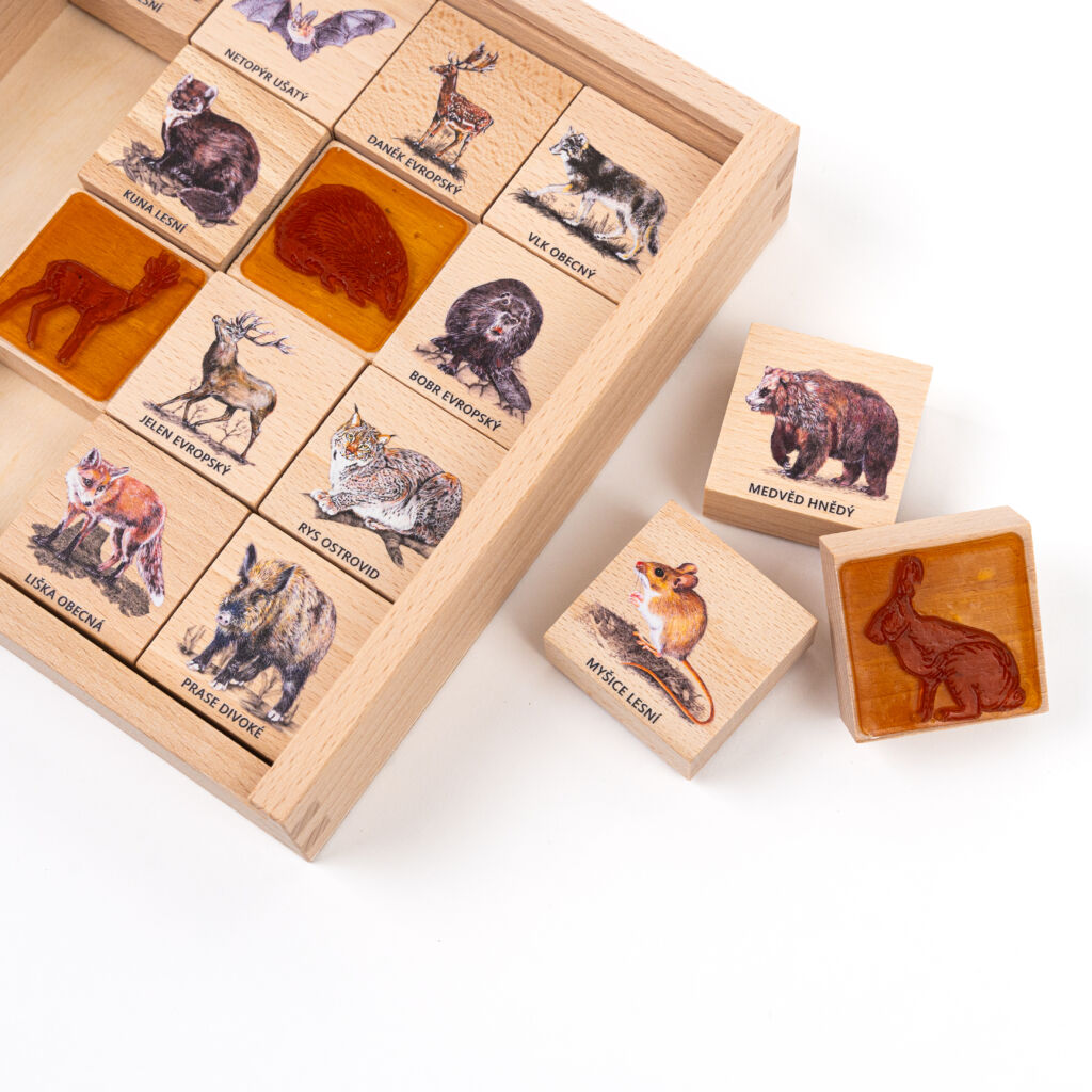Objevujte s námi nejznámější obyvatele lesa jako razítka v jedné sadě! Učte se o naší přírodě hrou!Razítka vyrábí u nás v dílně české ruce z kvalitního českého certifikovaného dřeva