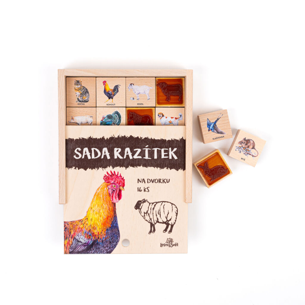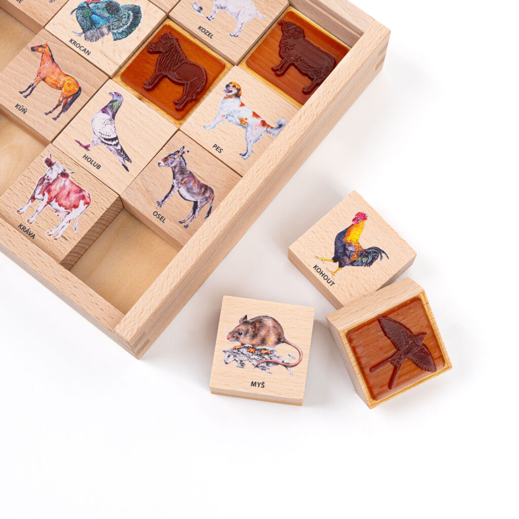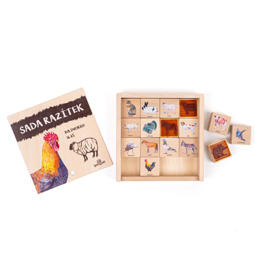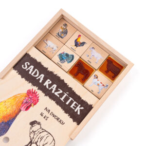 Která zvířata najdeme na dvorku se pomocí razítek v jedné sadě naučíte levou zadní! Razítka vyrábí u nás v dílně české ruce z kvalitního českého certifikovaného dřeva