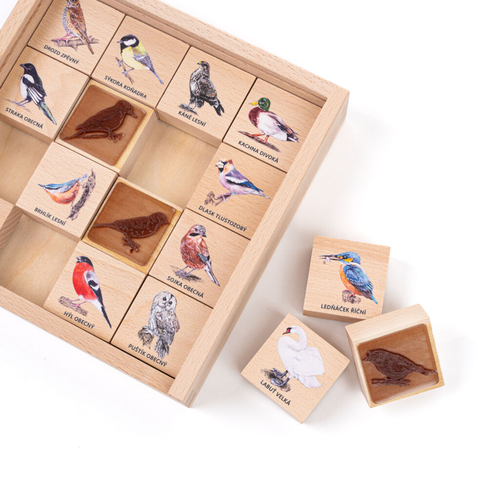 Nejznámější ptáci jako razítka v jedné sadě! Učte se o naší přírodě hrou! Razítka vyrábí u nás v dílně české ruce z kvalitního českého certifikovaného dřeva