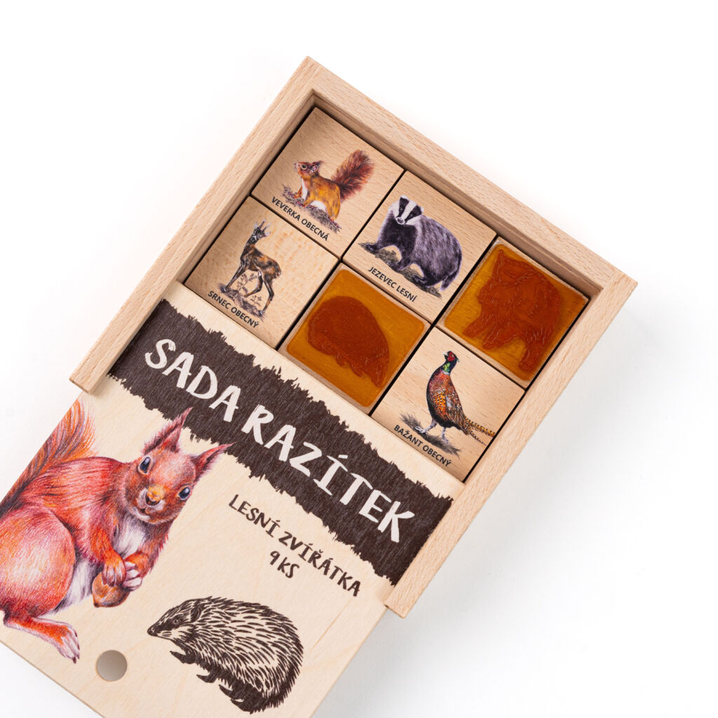Nejznámější lesní zvířátka jako razítka v jedné sadě! Učte se o naší přírodě hrou!• Razítka vyrábí u nás v dílně české ruce z kvalitního českého certifikovaného dřeva