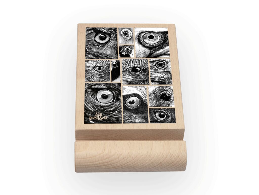 Lesní svět Stojánek na mobil a tablet L – Oči černobílé