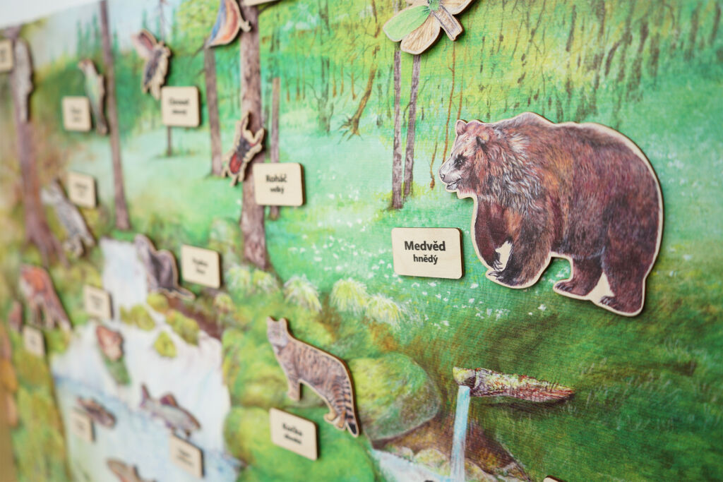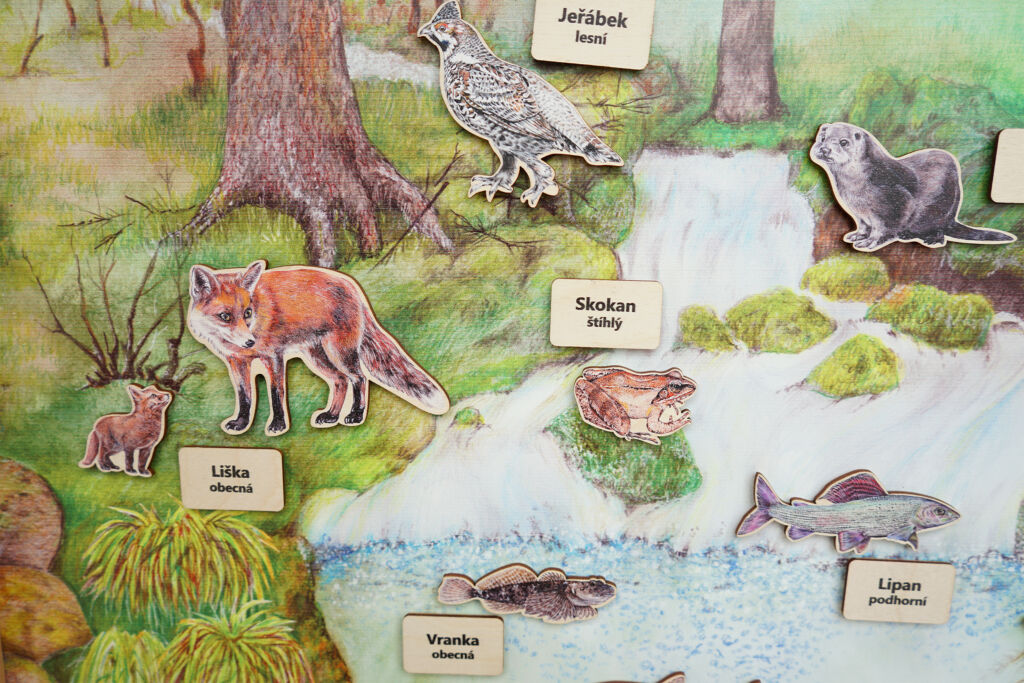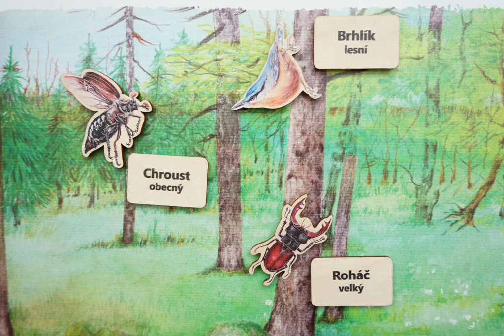 Součástí je 20 magnetů živočichů, kteří v biotopu žijí a 20 magnetů se jmény živočichů.