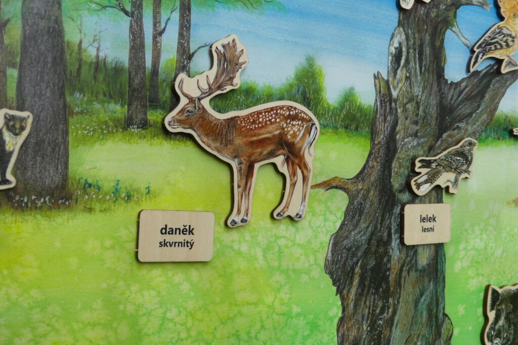 Součástí je 20 magnetů živočichů, kteří v biotopu žijí a 20 magnetů se jmény živočichů.