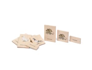 Mladší děti se učí jednotlivá zvířata. Starší děti přiřazují kostky s textem ke kostkám s obrázkem a třetí kostička, na které je obrázek i název, jim slouží ke kontrole.