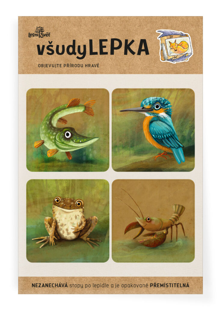 Vzor všudylepky: štika, ledňáček, rak, žába.