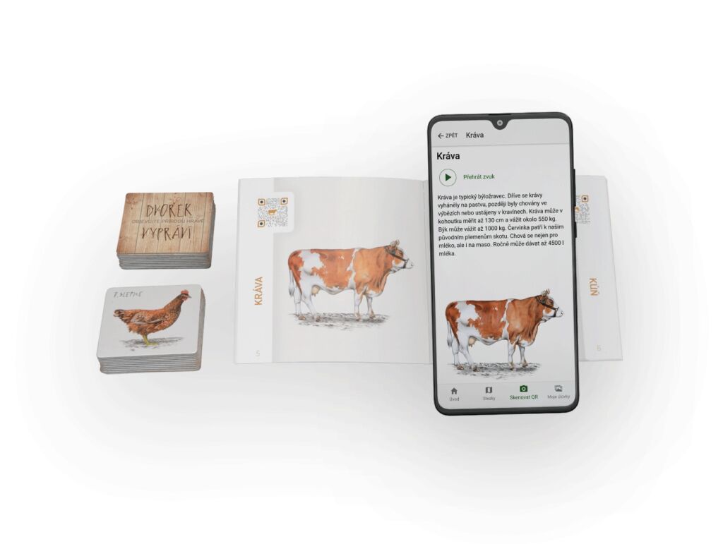 Pro poslech zvuku zvířat si stáhněte aplikaci Lesní Svět pro čtení QR kódů uvnitř brožurky.