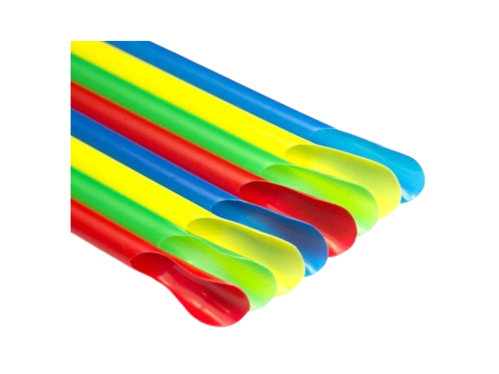 Odolná plastová brčka se lžičkou pro opakované použití, rozměry 200x6mm, mix barev, balení 250ks