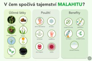 Máte citlivou pleť a hledáte něco účinného a přírodního, což vám pomůže vyřešit vaše problémy s pokožkou? Trápí vás akné, dermatitida, popáleniny, vředy, omrzliny? Nebo se pasujete s intimním problémem v genitální oblasti či zápachem z úst? Potom bude pro vás ideální tento všestranný přírodní pomocník Malachit. Je to multifunkční tekutý přípravek, který je koncipován s ohledem na nejakutnější potřeby lidského těla.
