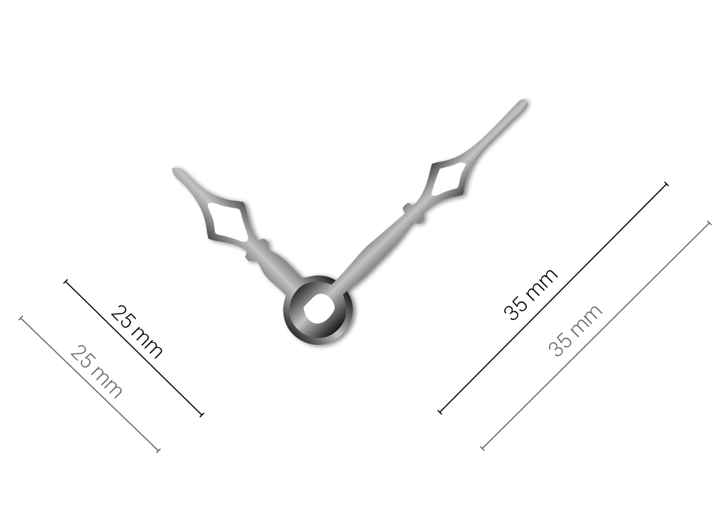 Malé stříbrné hliníkové ručičky na hodiny Classic 35 mm | 24 mm