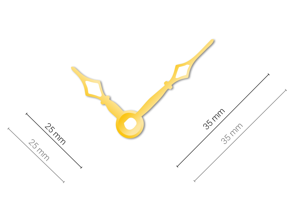 Malé zlaté hliníkové ručičky na hodiny Classic 35 mm | 24 mm