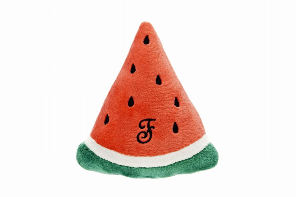 Meloun z dílny značky Ferribiella není jen další obyčejná plyšová hračka. Hned na první dotek vám bude jasné, že žinylková látka, guma a pevná výplň vydrží mnohem víc, než jiné hračky tohoto druhu. Uvnitř je i pískátko, abyste čtyřnohého přítele povzbudili ke společné hře i jinak než slovy.