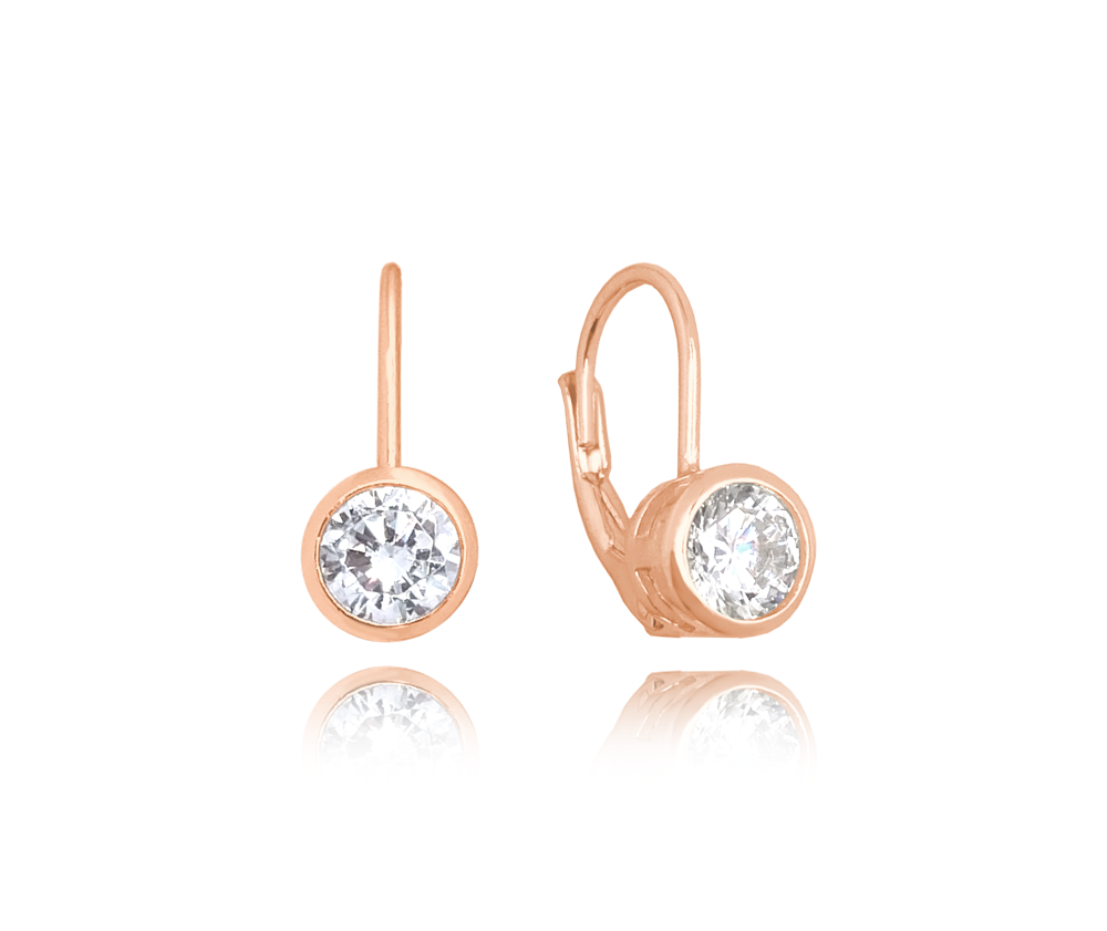 Rosegold stříbrné náušnice se bílým kamenem od české značky MINET jsou výrazné díky barevnému zpracování, přesto decentní.