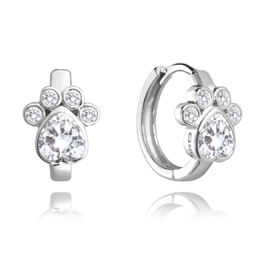 MINET Dětské stříbrné náušnice TLAPKY s bílými zirkony