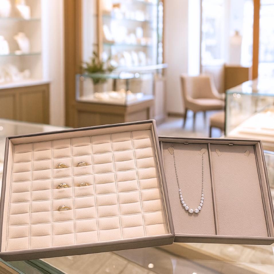 Prezentační plata MINET jsou vyrobena z kvalitních, odolných a příjemných materiálů. Díky praktickým barvám na nich není vidět prach, takže působí stále čistě. Šperky na nich krásně vyniknou a celý interiér prodejny s nimi získá profesionální a upravený vzhled. Rozhodněte se pro změnu právě teď a dopřejte svému obchodu prezentaci, která k vám přivede nové zákazníky.