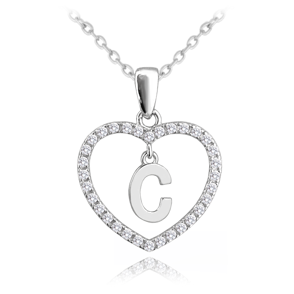 MINET Stříbrný náhrdelník písmeno v srdíčku „C“ se zirkony