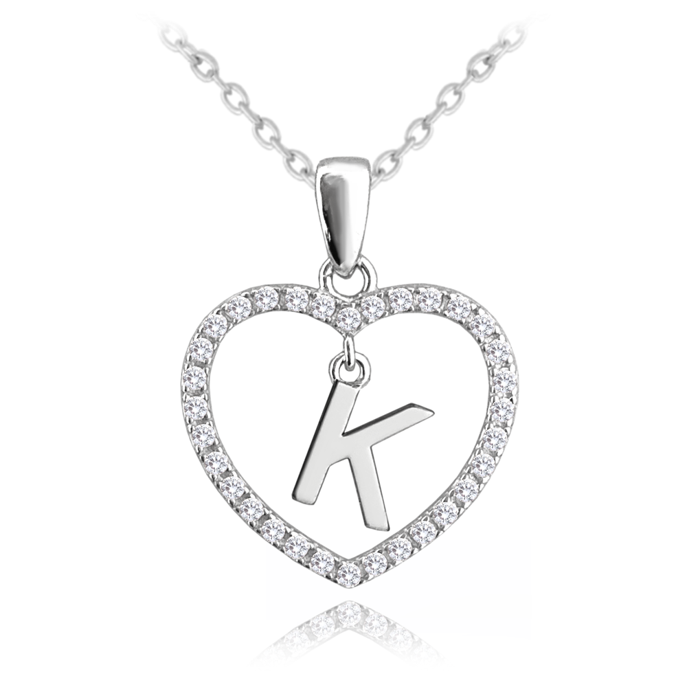 MINET Stříbrný náhrdelník písmeno v srdíčku „K“ se zirkony