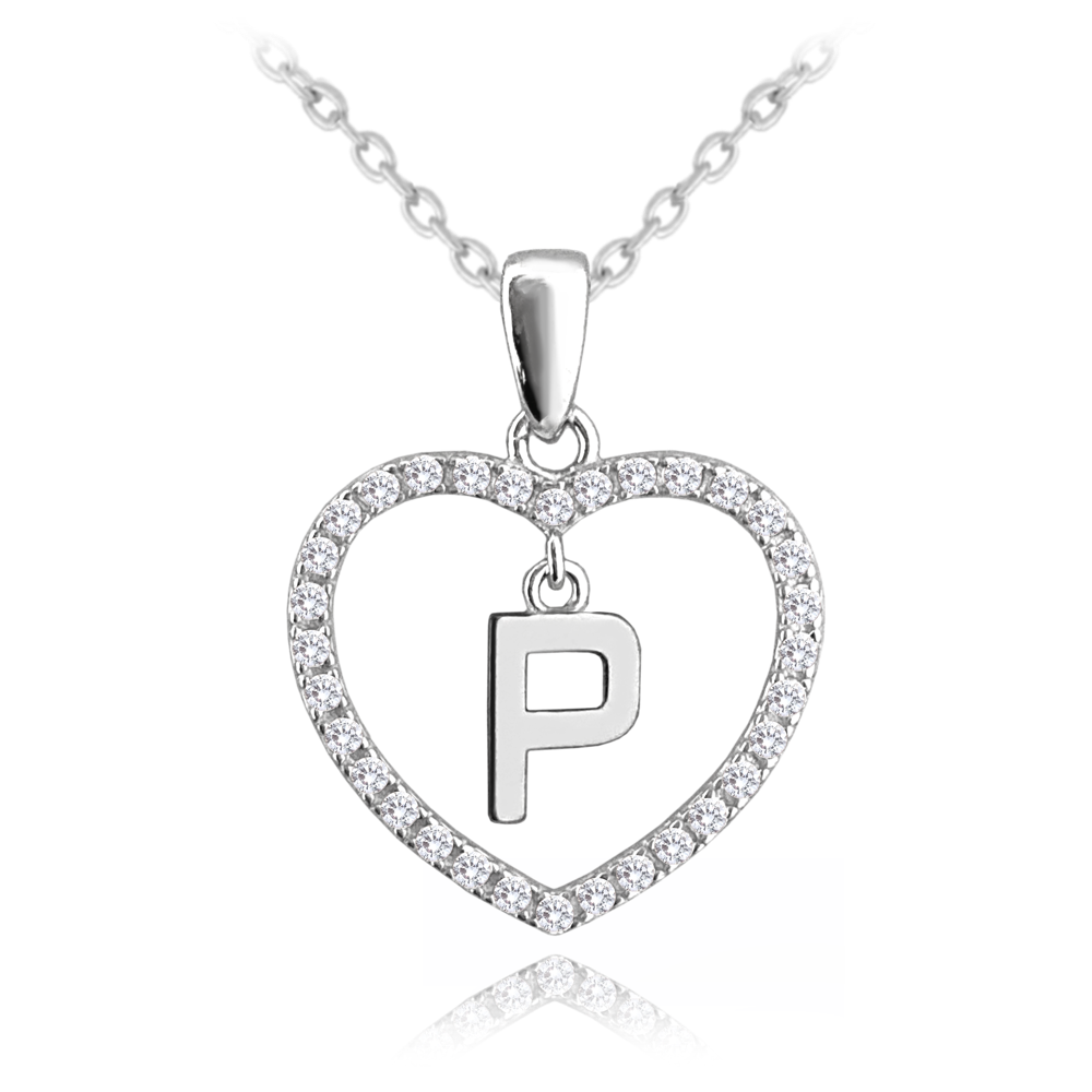 MINET Stříbrný náhrdelník písmeno v srdíčku „P“ se zirkony
