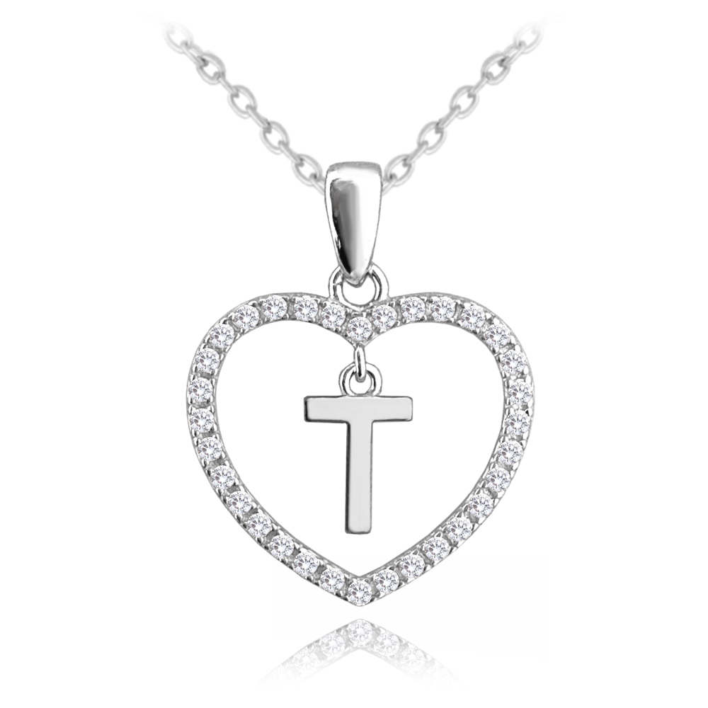 MINET Stříbrný náhrdelník písmeno v srdíčku „T“ se zirkony