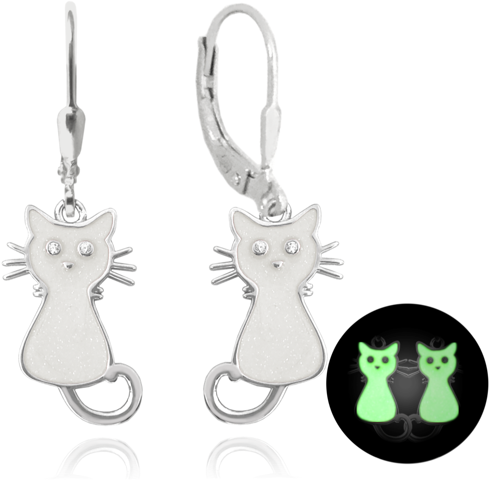 MINET Svítící bílé dětské stříbrné náušnice KOČIČKY