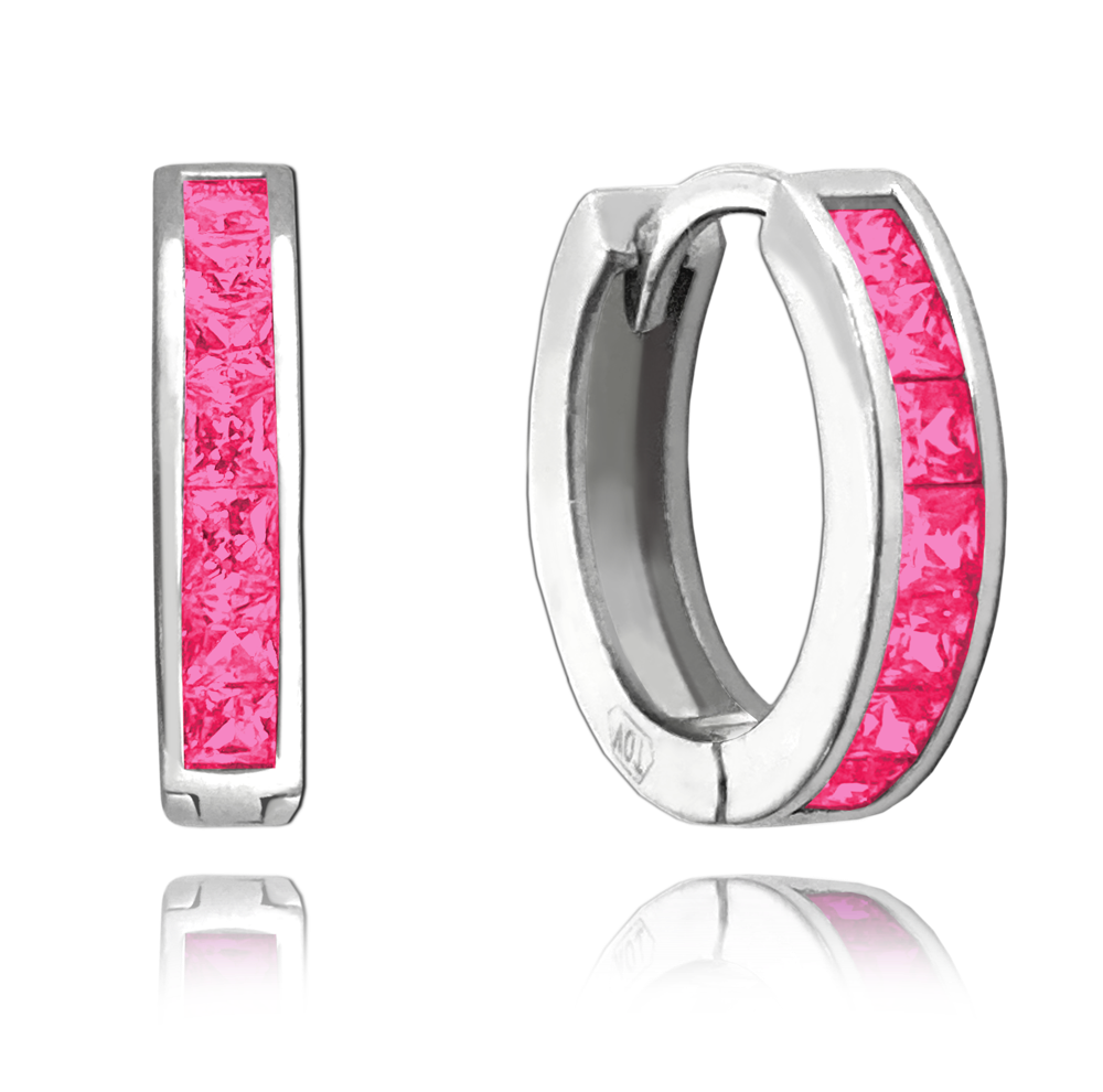 Tmavě růžové náušnice kroužky jsou díky praktickému zapínání a tvaru pohodlné pro každodenní nošení. Růžové zirkony se krásně třpytí a ozvláštníte jimi svůj outfit. Povrch stříbra je z rhodia, náušnice tedy neztratí svůj zářivý lesk a barvu.